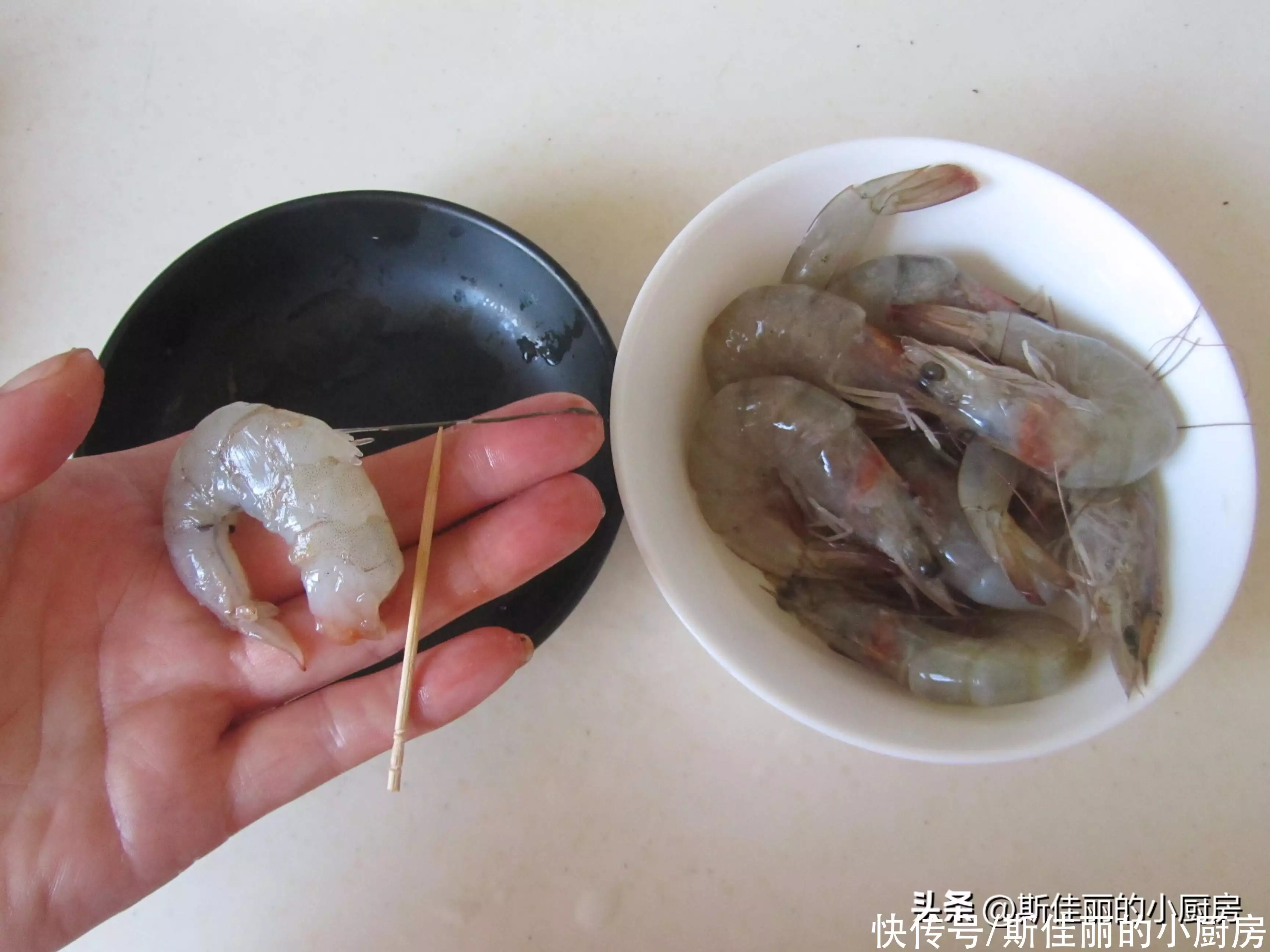 制作:1. 选用鲜大虾, 将鲜大虾去壳后挑出虾线;