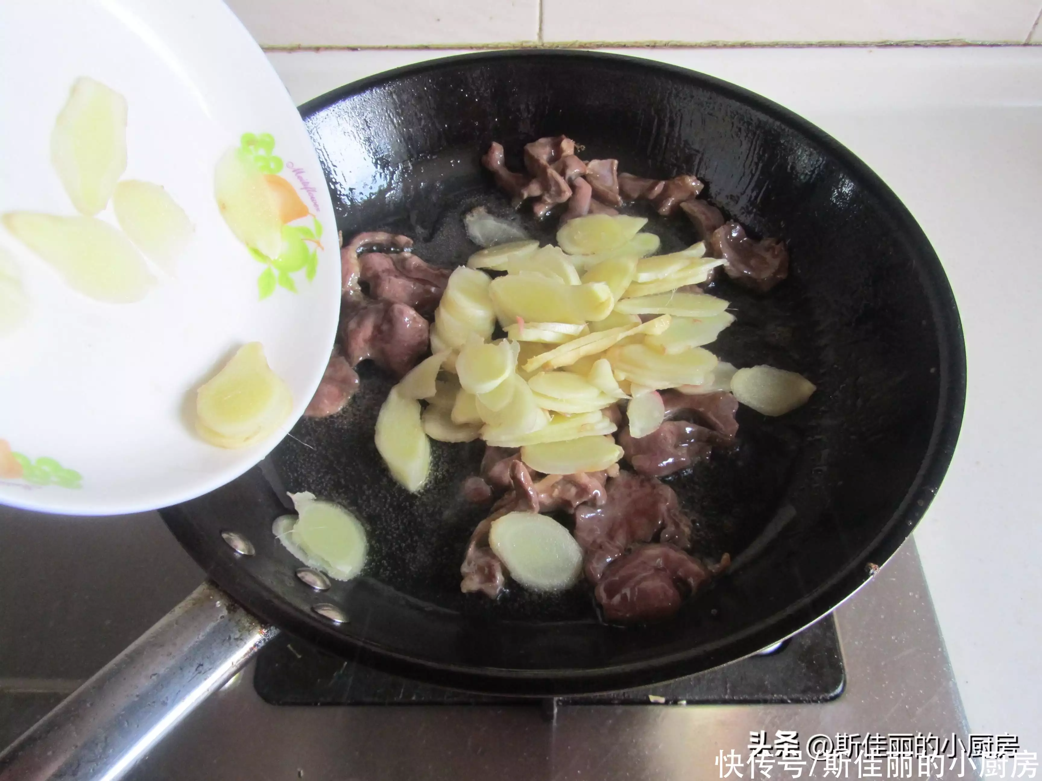 原料: 仔姜 猪心 红椒 料酒 淀粉 生抽 葱花 油盐
