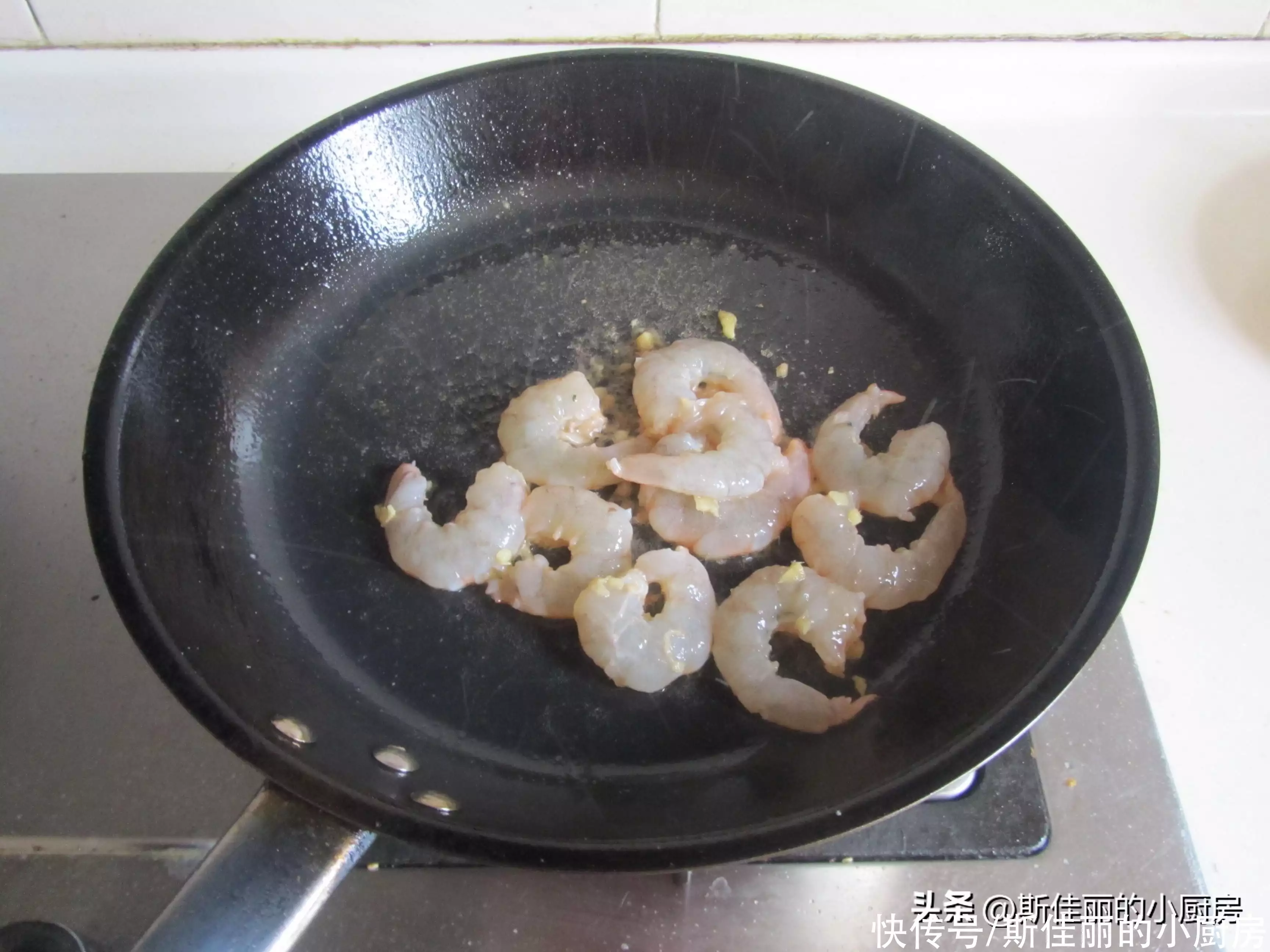 4. 烧热锅放入少许油, 将虾仁放入锅中翻炒至微微变色;
