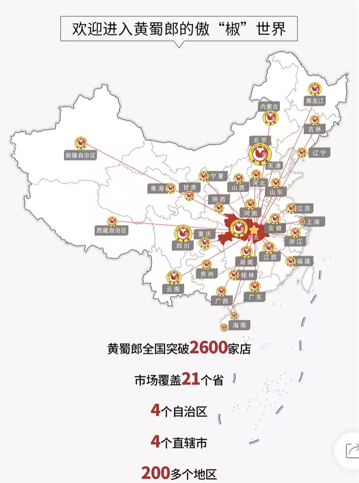 经查,黄蜀郎鸡公煲始建于2005年,出售鸡公煲、排骨煲、猪蹄煲等菜品,并通过加盟店的方式拓展盈利,目前全国已经超过2600家门店。
