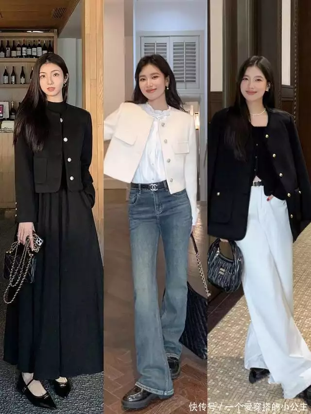 不管是黑色针织连衣裙,还是黑色丝绒连衣裙,穿起来都特别的优雅贵气。像这种透着贵气感的黑色丝绒连衣裙,叠搭白色小香风外套,富家千金的贵气感也是呼之欲出。