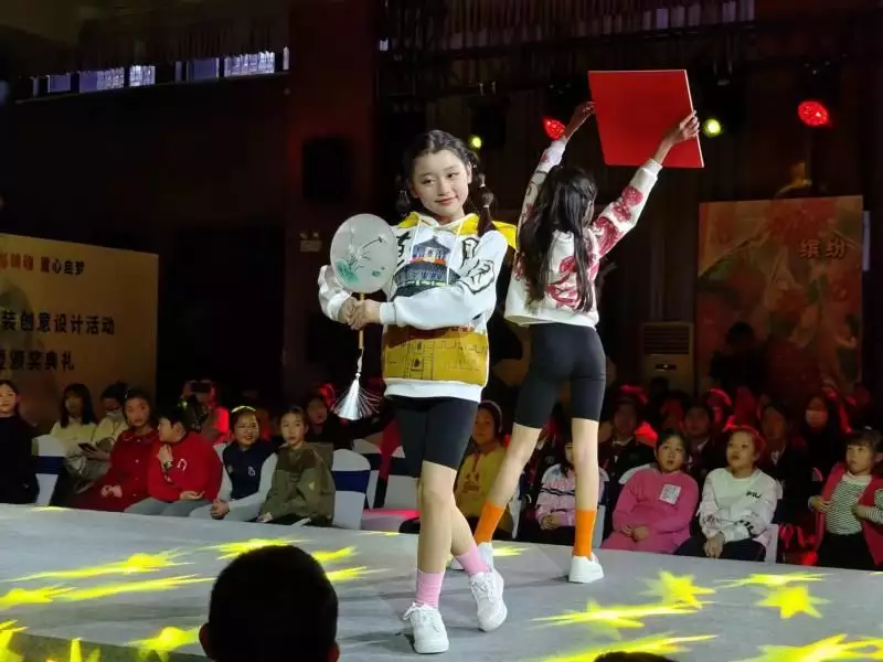 清朗校园的读书声拉开了表演序幕,来自丰台区劳技中心、丰台区璞瑅学校、丰台区第一小学、北京教育科学研究院丰台实验小学的100余名小模特们在T台上自信亮相,以“童真童趣”、“中国心”、“启势”、“梦开始的地方”四个板块展示了丰台少年的活力与风采。同学们用自己设计的服装作品在舞台上绽放自己、尽情表达心中的美好和对未来的期望。古琴、京剧、皮影、扎染等中华传统文化元素的展示与学生们的设计作品相得益彰,感染了全场的师生观众。