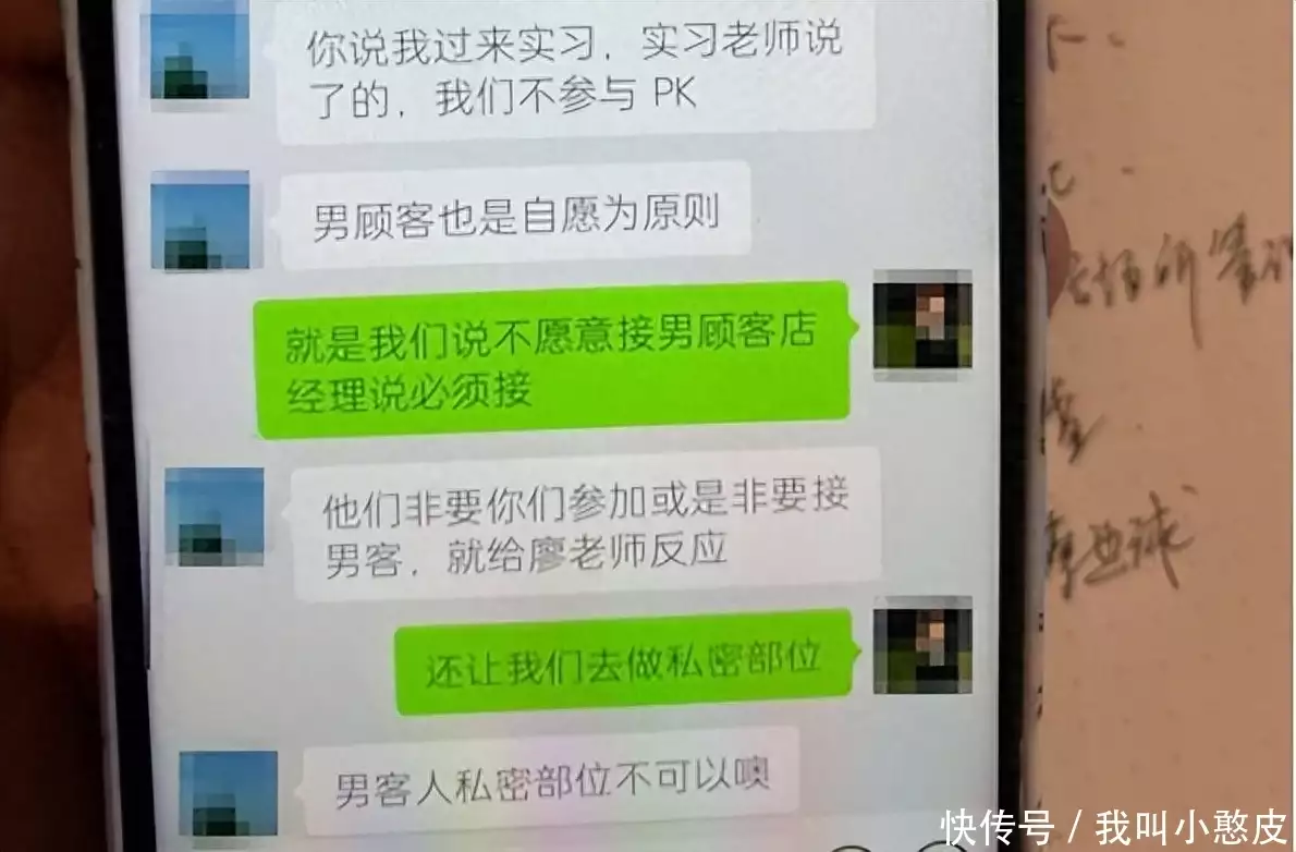《澎湃新闻》报道,王同学表示,她被实习单位永琪护肤造型湖津支路店安排为男顾客按摩,后来还需为男顾客洗澡、按摩生殖器三角区进行前列腺保养。她7月15日向班主任老师反映后,也不了了之。