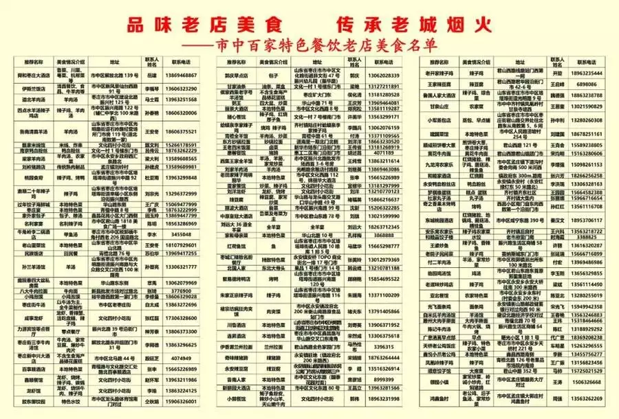 近日, 枣庄市市中区文化和旅游局开展了“传承老城烟火,品味老店美食”特色餐饮老店评选活动,组织专家评审对市中区近200家营业10年以上的餐饮老店进行优中选优,选出100家特色餐饮老店。无论你是美食家还是普通的食客,都能在这里找到满足你味蕾的美食。让我们一起走进舌尖上的家乡味,体验枣庄美食的独特魅力吧!