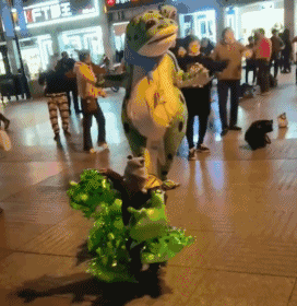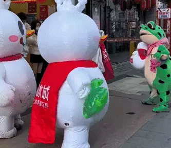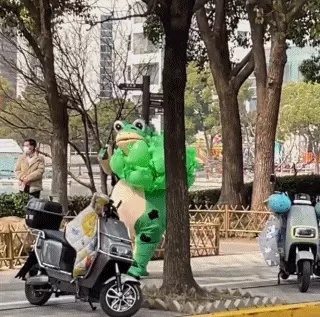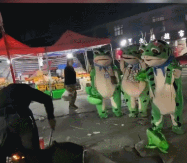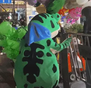 最开始,只有一小撮人穿上了青蛙服走街串巷。