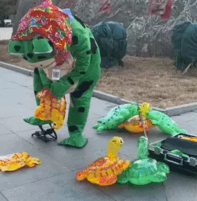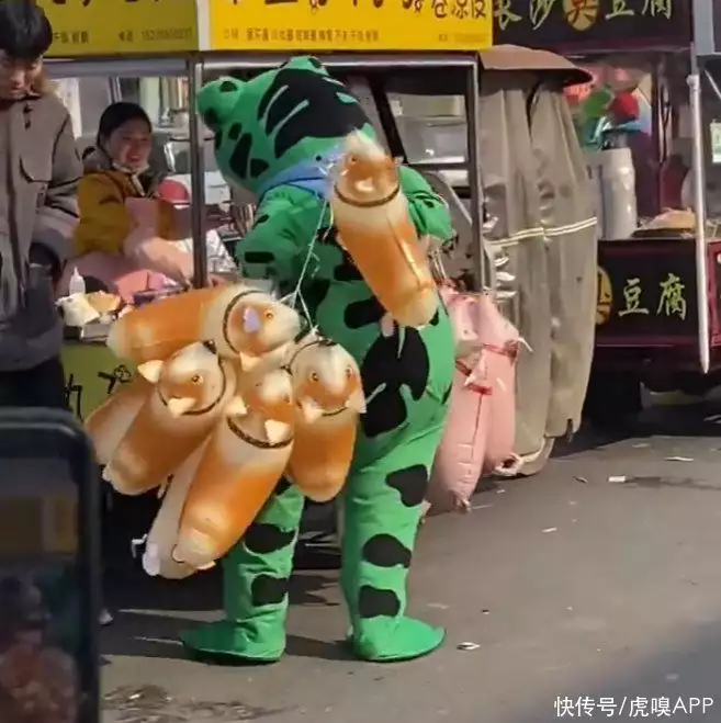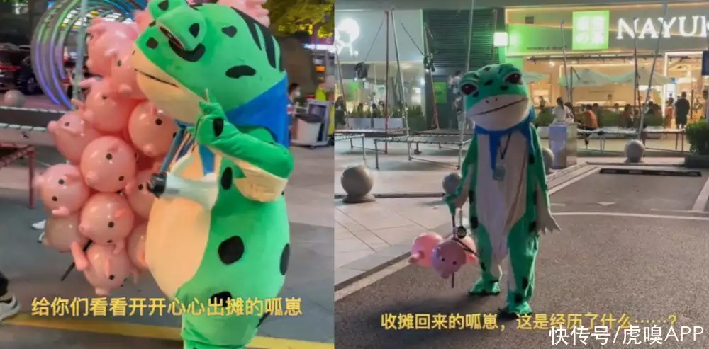 不知是哪一位天才前辈,率先想出了穿青蛙玩偶服、卖青蛙气球的赚钱门路,并打响了“不是生活所迫,谁会忍心卖儿卖女”的悲情口号。