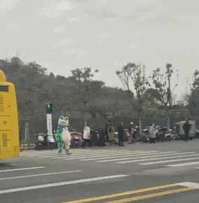 他们过马路时经常左看右看、显得非常呆萌可爱,这是因为玩偶服内的视野较窄,必须大幅度扭头才能确认左右安全。