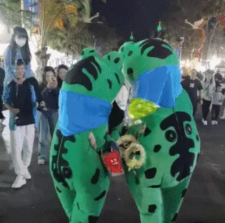 但没过多久,这套青蛙人偶服就被挖掘出了新的用途——