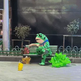 据我观察,相比于传统的街头卖气球生意,青蛙们在卖崽时往往还要另外附赠卖艺服务,这已经是青蛙界的基础操作。