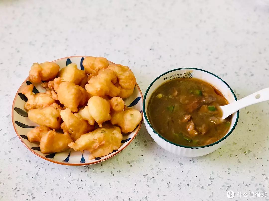 油馍的最佳搭配莫过于胡辣汤了,胡辣汤作为河南地区的特色小吃,汤味浓郁,香辣可口,天冷的时候来上一碗,既暖身又提神,胡辣汤的做法相对复杂一些,大家如果不想费事,可以提前准备一些胡辣汤料包,5分钟就能熬好,再加上几片牛肉,营养又美味,配上油馍,简直是绝了!