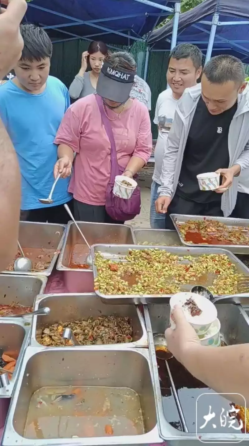 陈立炳告诉大皖新闻记者,今天中午,大约有二十位志愿者在现场帮忙,除了有爱心视频主播帮忙做志愿者外,还有合肥北城一个二手市场的老板,也带了七八个人来帮忙,“人家义务给我们帮忙,我们也非常感谢!”陈立炳表示,感谢大家的关心和支持,并会继续经营好十元自助快餐!