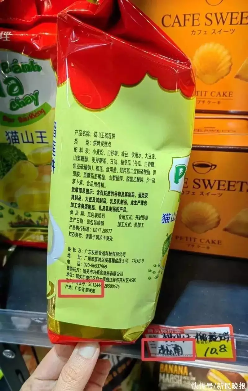 标签产地为越南的“猫山王榴莲饼”,实际产地为广东韶关;