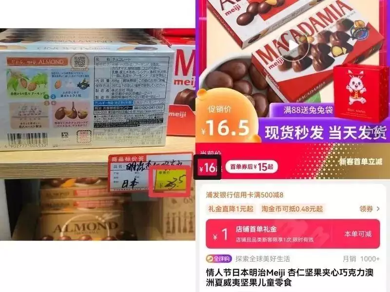 左图:进口食品折扣店价格;右图:电商平台价格。