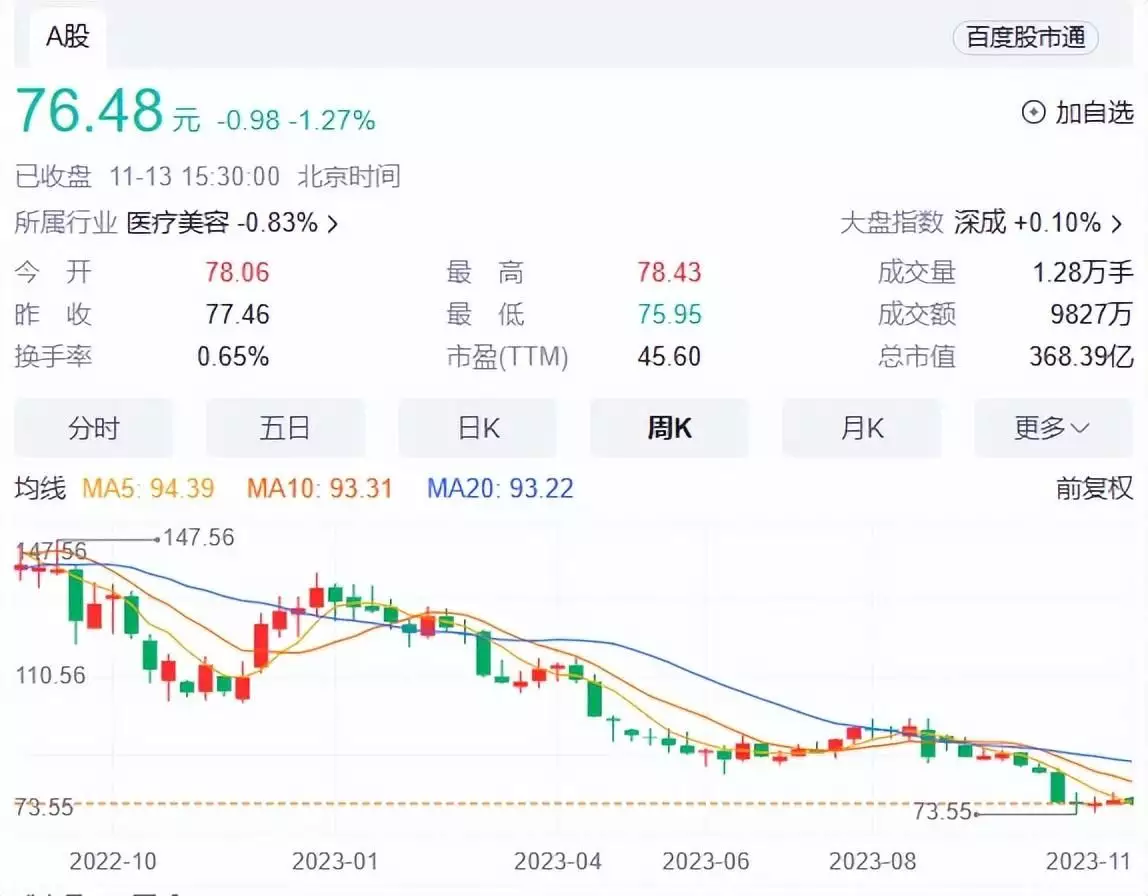 以当下华熙生物(688363.SH)每股76.48元来计算,较年初峰值138.75元已经下降超过40%。