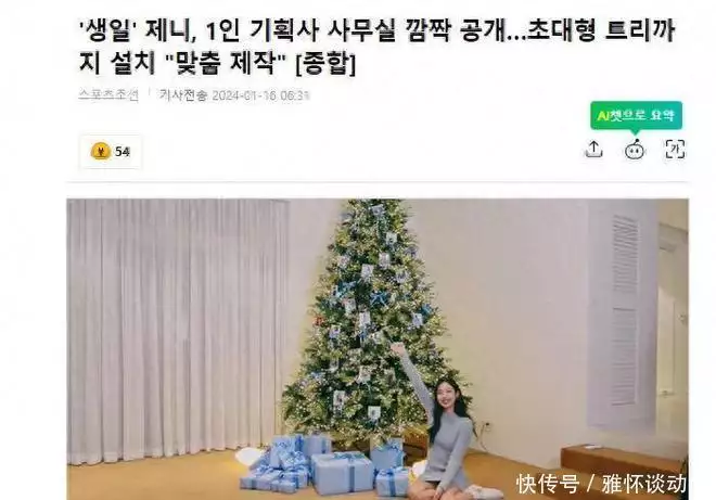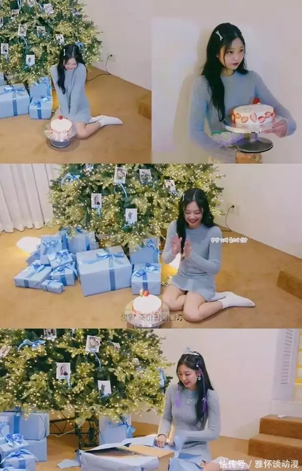 视频中,Jennie在装饰着一棵大圣诞树的大房间里打开了生日礼物。Jennie再次介绍了公司情况,并表示“这是我们的办公室”,并对员工表示感谢,她说:“我们公司的员工把这棵树装饰得很漂亮,他们做了Jennie自己的树,谢谢你们。”