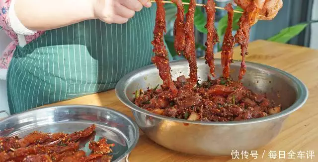 2、肉干好不好吃的关键点之一就是腌肉,所以腌制的时间一定要够,就算没有一夜,起码也要3-5个小时,不然肉条不入味儿,晒出来的肉干就会不好吃。