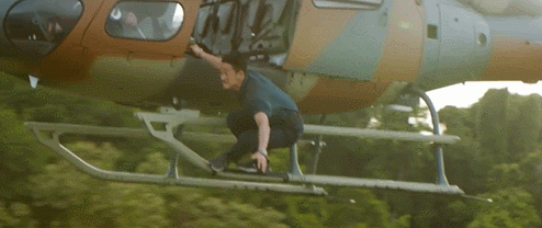 虽然演的是个科学家,还是亲自出演了譬如徒手扒直升机的戏。