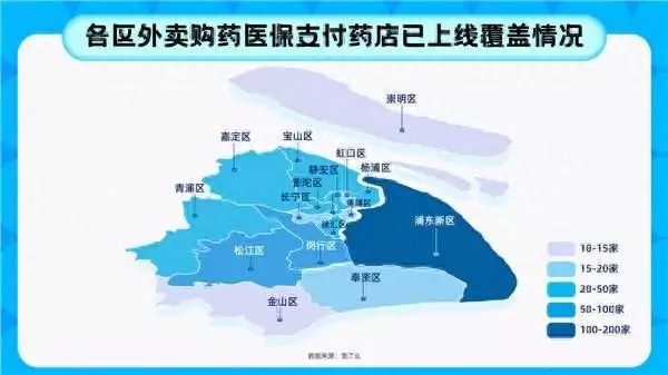 记者了解到,在支持医保支付外卖购药商家快速增长的背景下,饿了么平台宝山区、徐汇区、普陀区、杨浦区、虹口区、长宁区、闵行区、静安区、黄浦区、浦东新区以及嘉定区已基本实现区域内市民需求全覆盖:通过外卖平台,市民可以方便找到身边数家可支持医保支付的药房。