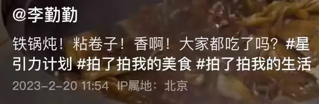 2月20日,戏骨李勤勤在社交平台上更新一则动态,晒出自己和好友们一起去吃东北铁锅炖的视频,她的状态引起关注。
