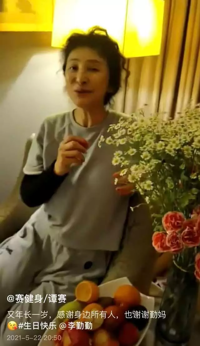 谭赛尊称李勤勤为勤妈,2021年他过生日时,李勤勤还特意为其庆生。