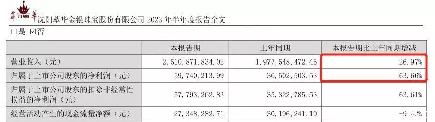 对于营收净利润增长,萃华珠宝表示,报告期内,国内经济稳步复苏,公司充分把握市场机会,整体销售情况向好,上半年公司营业收入较比去年同期大幅增长。