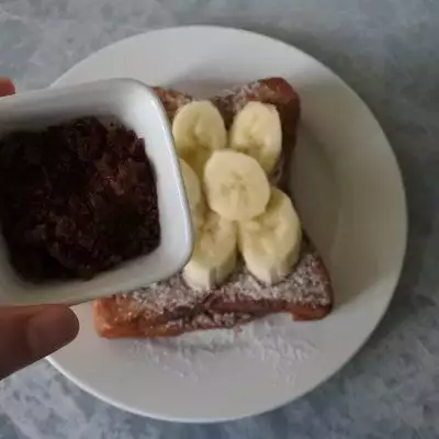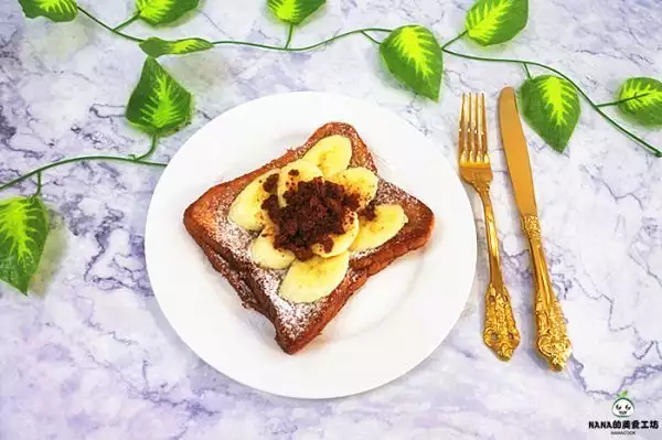 用料切片面包适量 香蕉一根 全脂牛奶100ML 鸡蛋一个 巧克力脆一大勺 纯可可粉一小勺 白糖一大勺 糖粉一小勺 无盐黄油适量 做法步骤 < style="text-align: left; margin-bottom: 10px;">