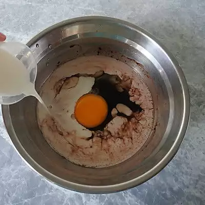 1、在小盆里放入可可粉,用少量的热水冲开,加入白糖搅化