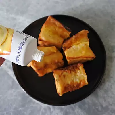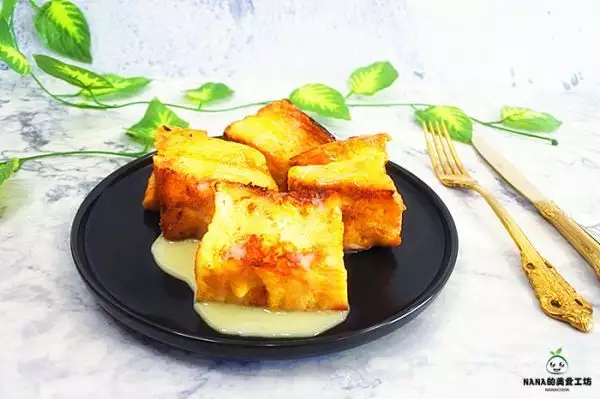 蛋奶液里面没有加糖,因为后面咱们直接淋上炼乳来吃,炼乳本身就挺甜,所以就把糖给省了。正常来说这个甜点蛋奶液里面是需要加糖的,也要加香草精去除蛋腥味。 但我觉得市场买的鸡蛋质量不错,以前也试过不加香草精的版本,一样的好吃。你自己在操作的时候可以选择加进去,这个无所谓,看你自己喜好就行。加了的话就会有一股淡淡的香草味,很好吃呦 厚切吐司你要是没有可以换成比较常见的面包片,这个不强求什么。奶酪的话我选的是三明治专用的那种芝士片,你可以选择你自己喜欢的种类,都可以。即便是你说没有芝士片的话,单独用面包沾满蛋奶液用黄油煎一下它也好吃,总之这个甜点就是你怎么做都好吃