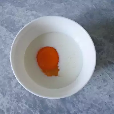 2、鸡蛋嗑进碗里,倒入大约小半袋牛奶搅匀