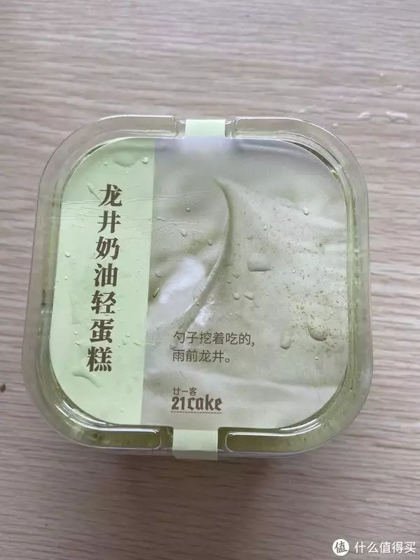 我非常喜欢甜品,之前在家里也做过,但是做的时候比较麻烦,需要用到烤箱,需要用的材料也非常的多。虽然说自己做的健康又好吃,而且价格又便宜,但是得看做多少,如果只做一两个小蛋糕或十六七个小蛋糕,自己做就非常不划算了,需要买那种奶油呢,价格非常贵不说,而且打开就要用光,不然就会坏掉。买面也是一样的,还有那些小盒子和上面的撒料。都要买一大堆,可是我们自己能吃到的也就是一两块儿,也不能天天都吃小蛋糕啊,所以最近我在网上买了几款小蛋糕,回家尝了一尝,最终获胜的就是这款21客的龙井奶油蛋糕。