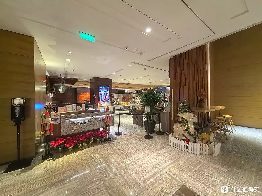 如图所示,门厅空空荡荡,走个后门直通商场,大堂一直人来人往外加也没啥好拍的,就只拍了几个角落和圣诞布置,可以说相当单调乏味。