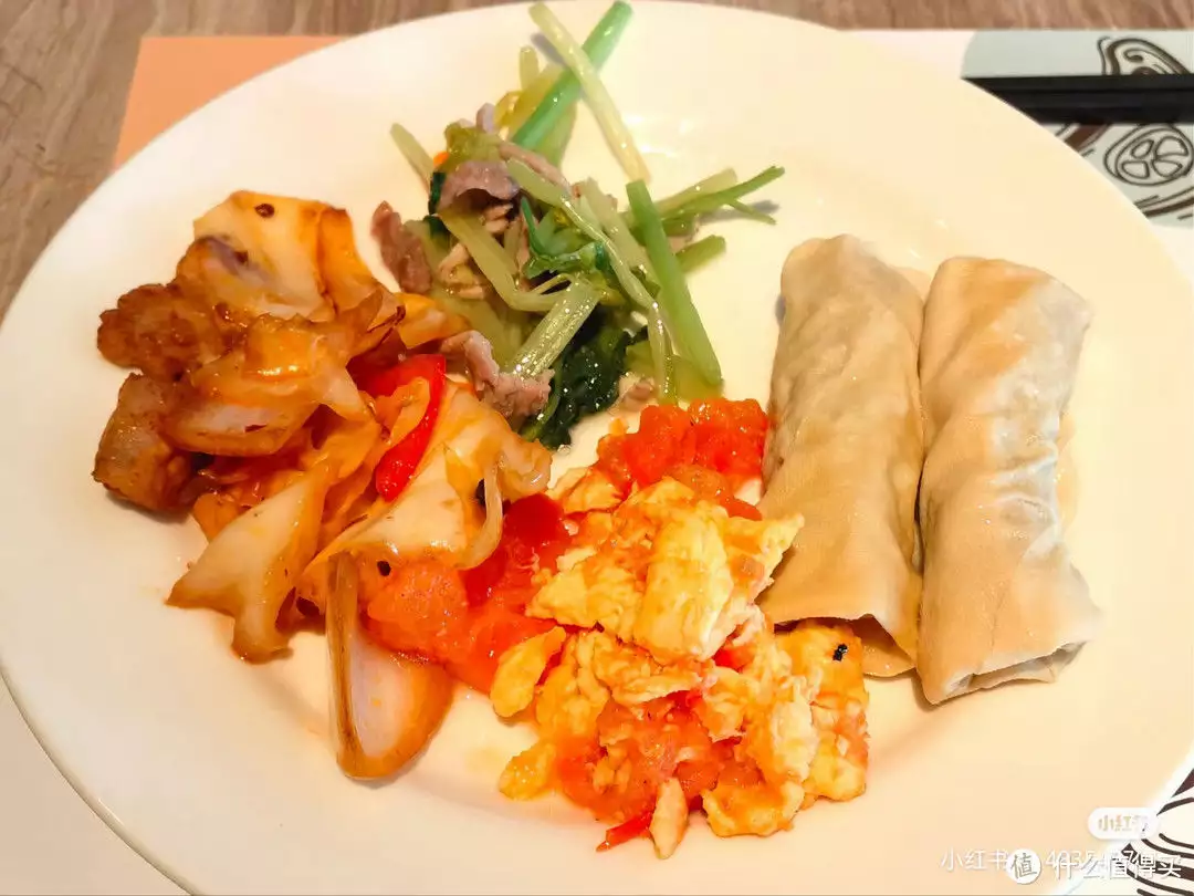 其他就是4个凉菜,4个热菜,4款炸物,热菜有炒有炖有烤,种类齐全,味道也还可以,炸物里的梅干菜酥饼不错。凉菜就是糯米藕,凉拌鱼皮这些。