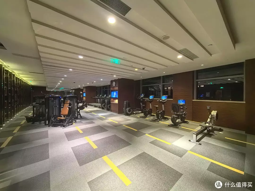 健身房面积挺大,基本器材都有,泳池没进去拍。