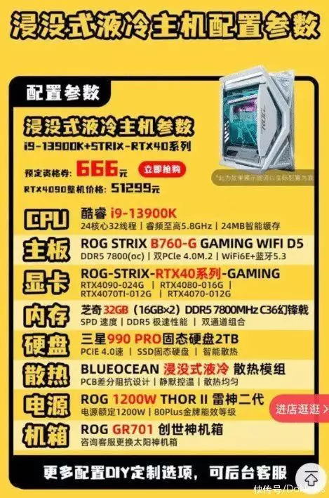 以几个槽点过多的套餐为例,大几千元档的主机用金士顿NV2、杂牌电源;2万元档用500G固态硬盘,大约和5000元档的品牌机相当;5万元档的顶配套餐,主板用中端B760、990PRO。