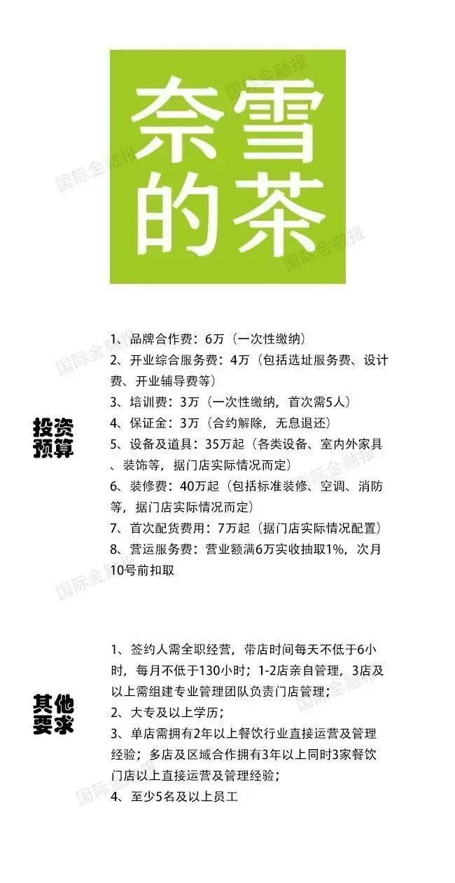 食品行业分析师朱丹蓬在采访中告诉《国际金融报》记者,奈雪的茶原先的直营店及盈利模式存在弊端,所以最终选择放开加盟,但其加盟门槛又相对较高,于加盟商而言风险相对较大,加上客观存在的不确定因素,“我们认为它的这个加盟模式并不是很乐观”。
