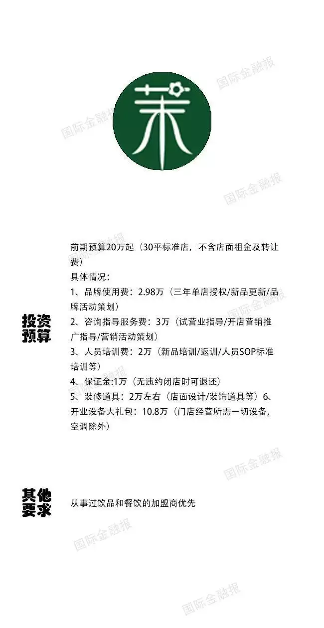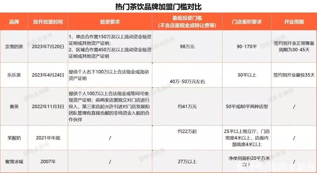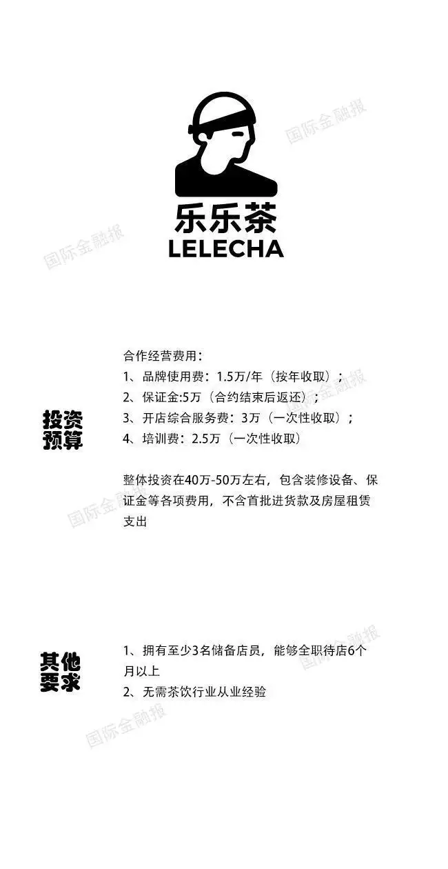 乐乐茶则在40万-50万元之间,其中包含装修设备、保证金等各项费用,不含首批进货款及房屋租赁支出,其品牌使用费为1.5万元/年,开店综合服务费3万元,培训费2.5万元。