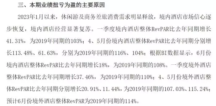 记者注意到,近期首旅酒店、锦江酒店均公布了上半年业绩预告,受益于休闲游及商务差旅消费需求明显释放,两家酒店的RevPAR(平均可出租客房收入)显著改善,上半年预计扭亏为盈。