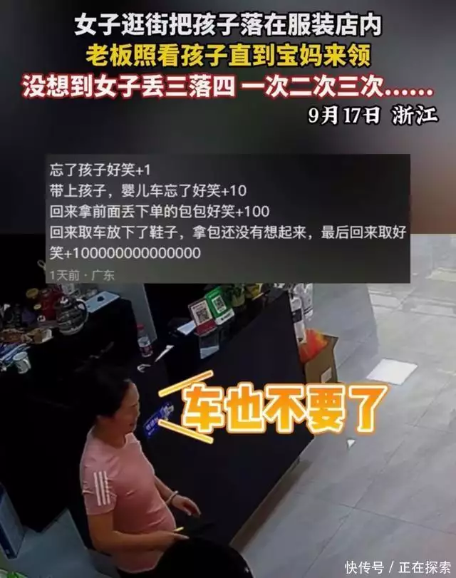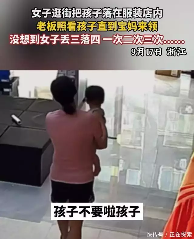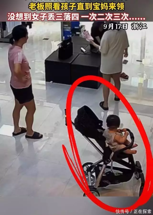 9月17日,浙江,一店主分享女子逛街买完东西付完款,走的时候竟然把孩子忘在店中的视频引发关注。网友吐槽,真是生孩子生傻了。
