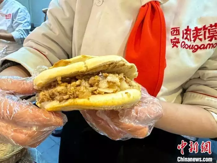 < style="text-align: left; margin-bottom: 10px;">制作完成的西安肉夹馍。 李一璠 摄