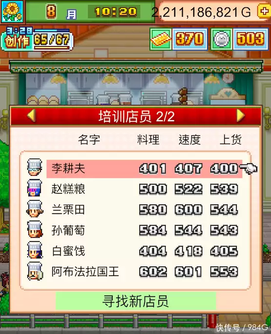 > < style="text-align: left; margin-bottom: 10px;">前面说过了顾客,接下来就需要聊到员工系统了,至少在G哥截稿时,店里只能雇佣6个员工,网上有说可以雇佣7位员工的说法应该是不靠谱的。开罗游戏向来都有两个特点,第一点是对建筑或者设施的养成,第二点是对人物的养成;具体到创意蛋糕店里来说,第一点就是食材与产地,第二点就是顾客与员工,相比于顾客的耗时耗力,员工的选择就容易得多了,在前期可以直接选择最便宜的员工,甚至到了中后期也可以采用这个方法,各位员工的最大区别就是技能,由于这个技能直接影响甜品最终形态,所以所谓的选择员工其实就是选择员工技能。