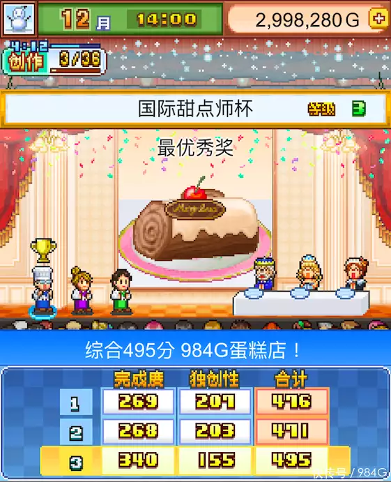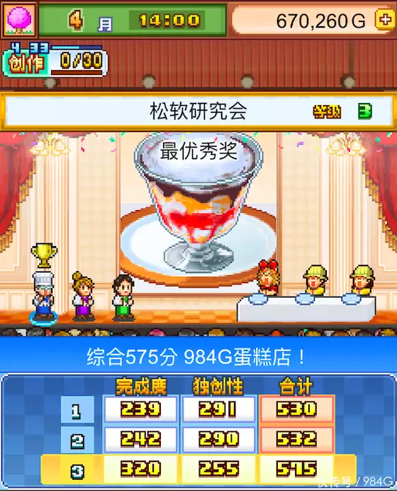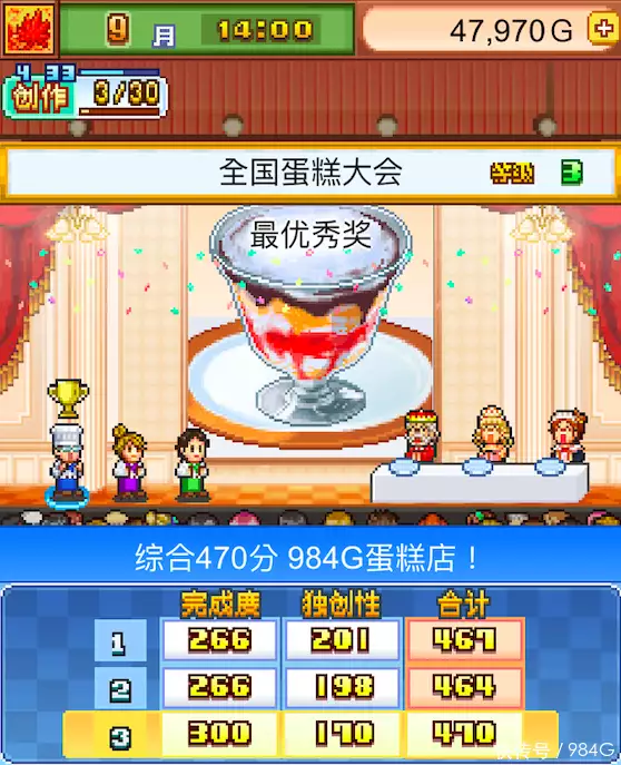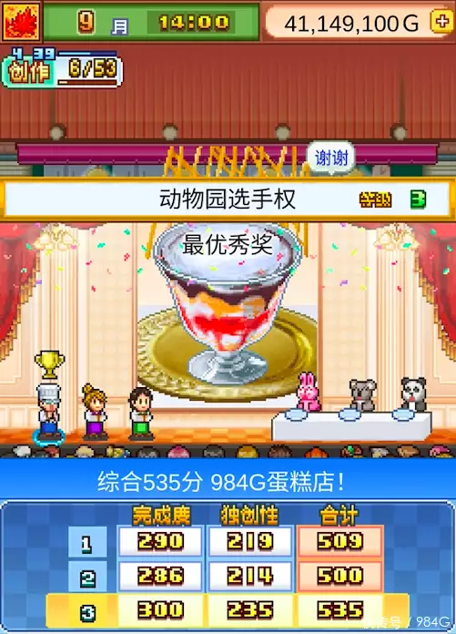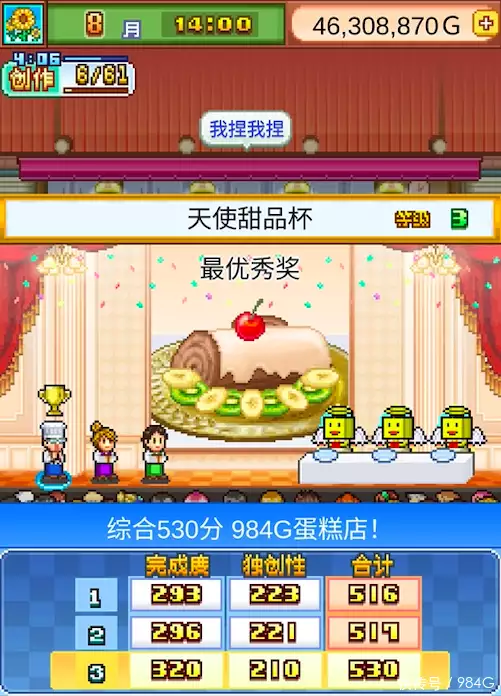 > < style="text-align: left; margin-bottom: 10px;">既然说到了大赛,G哥在本篇内容中就简单说一下打比赛的心得,直到天使杯前都没觉得存在什么难度,只要朋友们的食材级别正常增长,多试几种圣诞树蛋糕和大芭菲配方就可以获胜,比如动物杯的大芭菲配方:香草冰淇淋+打泡鲜奶+大草莓或很多草莓+蓝莓酱+椰果+糖工艺品,只要卡路里不超就可以赢得大赛;但是到了天使杯之后,数值要求过高,需要一点小技巧,那就是在合适的产地制作出甜品,再切换到品质最高的产地去参加大赛。