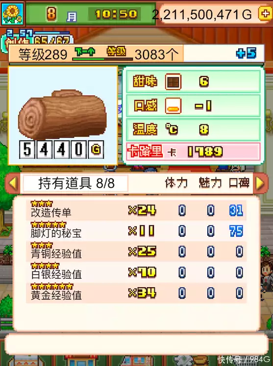 能够贯穿始终的几个食材请朋友们务必记好,多多升级。基底首选树桩年轮蛋糕,材料首选打泡鲜奶,级别越高越好,不管是打比赛还是刷产地都是主力,属于可以一直用到卸载的存在;与打泡鲜奶同系的椰奶在大部分情况下都是作为替补,在配方一定的情况下,使用打泡鲜奶后卡路里必爆的情况下,用椰奶作为替代品以保证成品可以用来打比赛,如果用来售卖,那么可以不必在意卡路里。其余使用频率较高的材料,以G哥个人感觉来说,包括抹茶巧克力、终极巧克力、薰衣草巧克力与巧克力极(相对不多但偶尔要用到)、砂糖开罗,除了上面几种常用材料外,其余水果系、草莓系、砂糖系、精华系的材料朋友们可以从上一段中随意选取两种升级,不用升太高,因为中后期如果不玩殿堂挑战的话根本用不到,打比赛的时候主要用到的还是树桩蛋糕配方。
