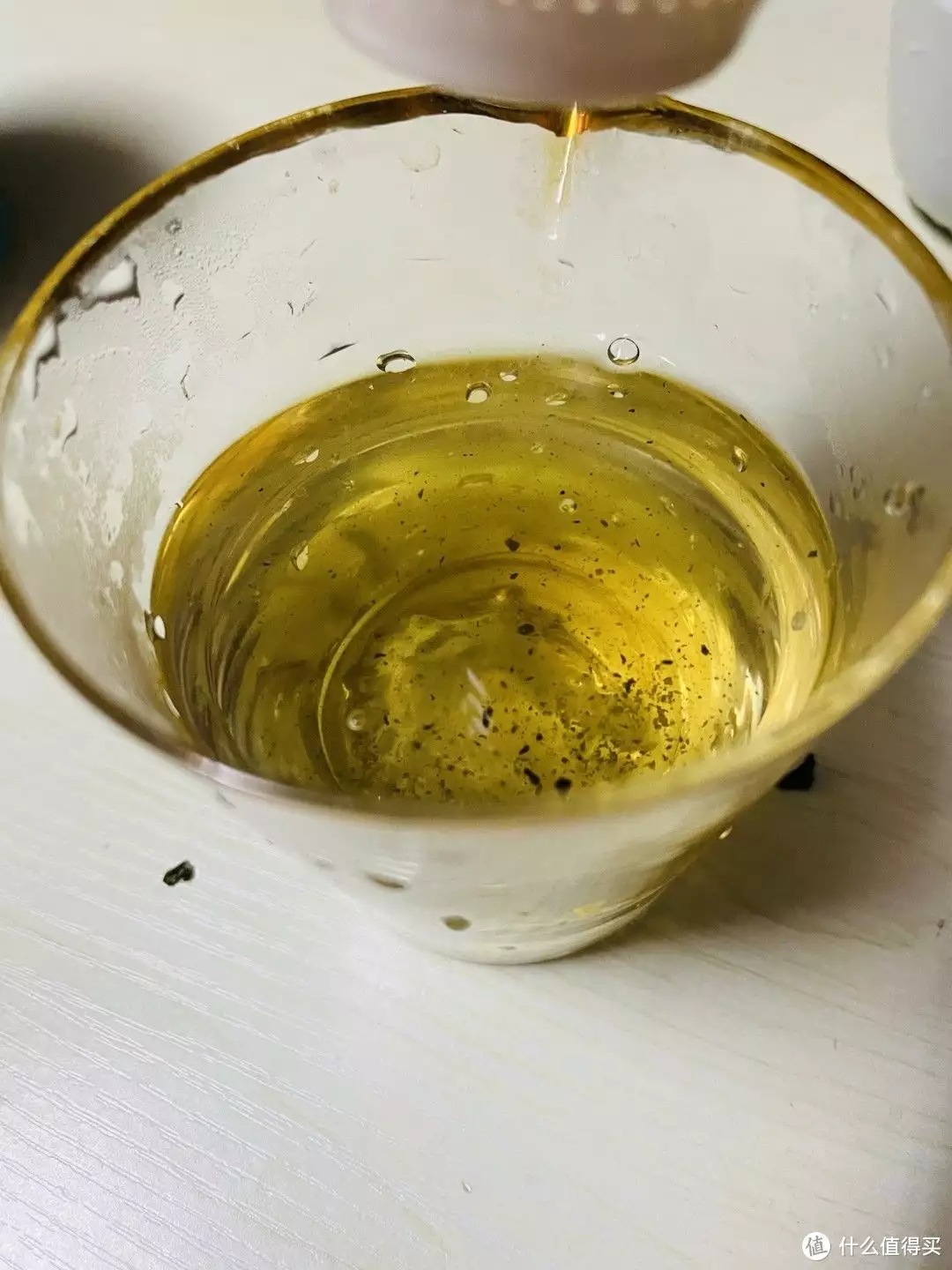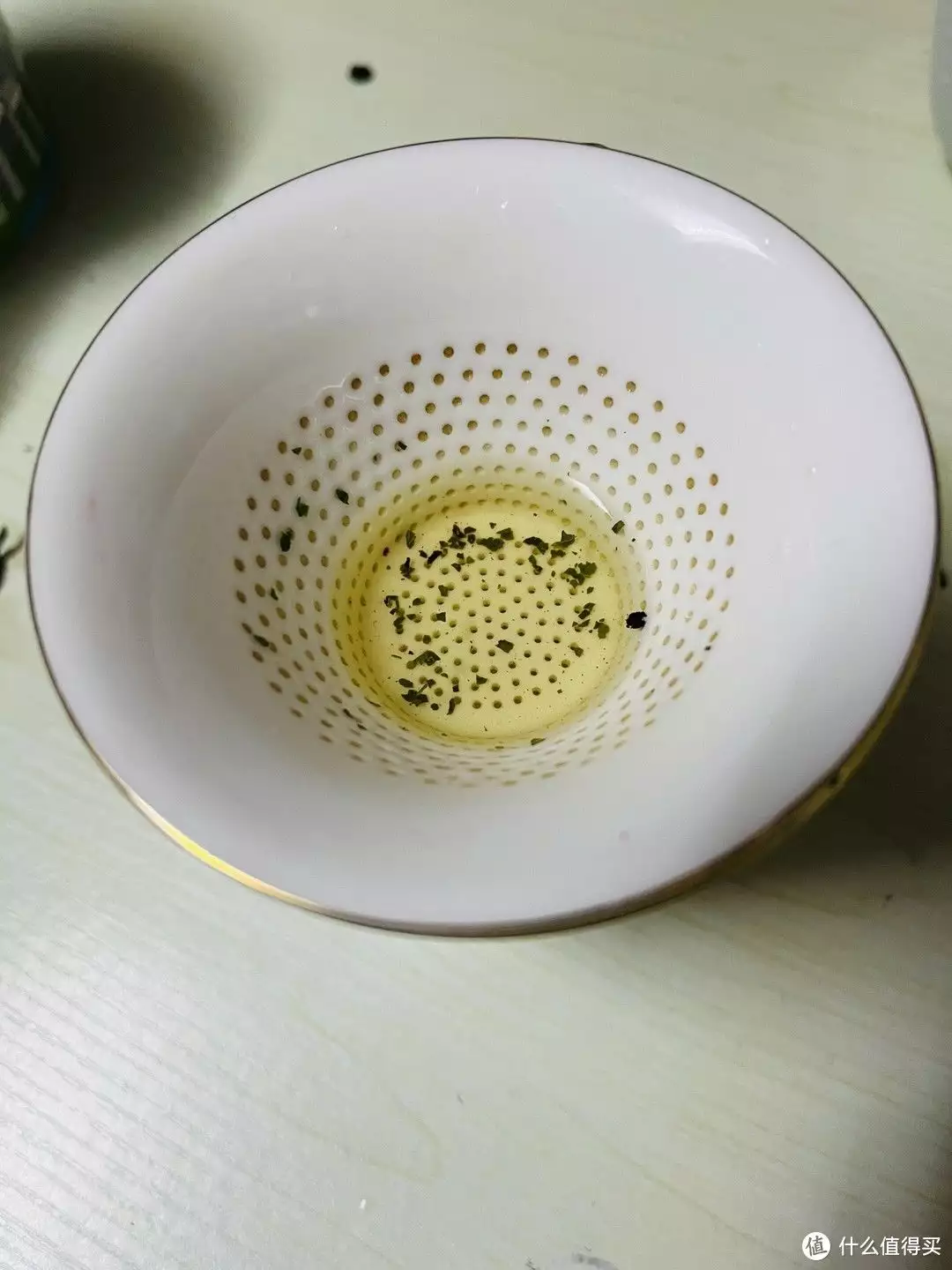 我这个茶漏的孔还算小的,但依然很清楚地看到许多茶渣。我个人不喜欢喝铁观音也是这样的原因,我不喜欢茶汤里还茶碎,大概是强迫症吧,总感觉有异物黏在喉咙里,每次都不能很享受地一口喝完茶叶。