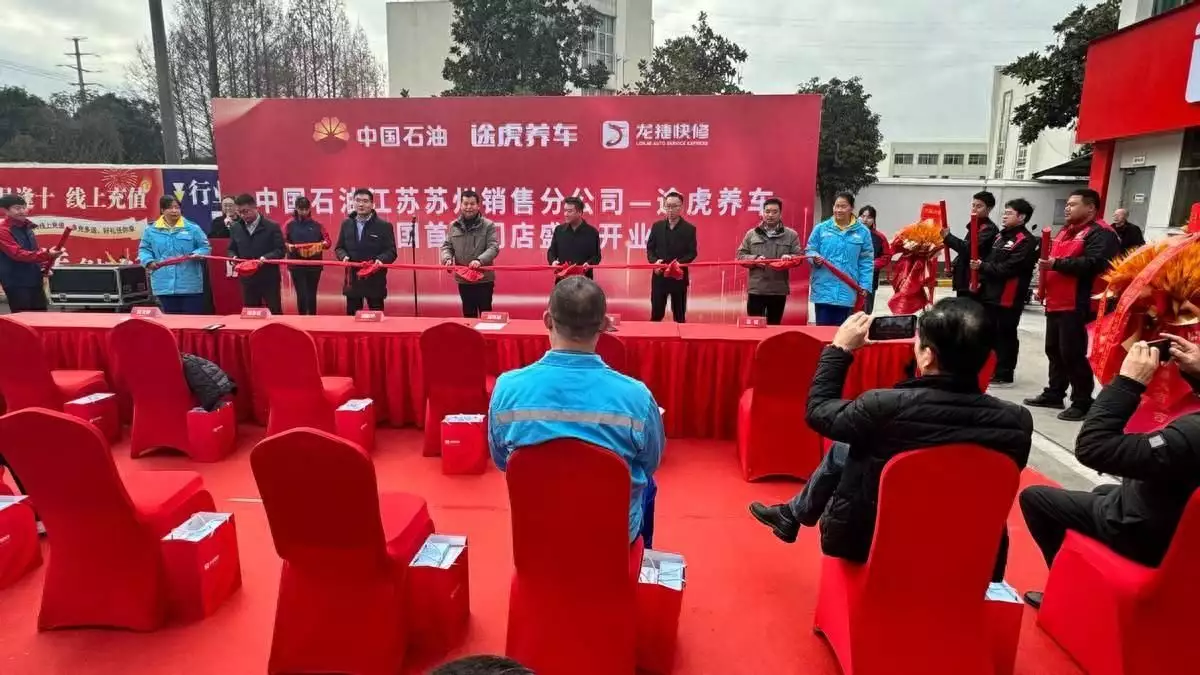 1月16日,由中国石油江苏苏州销售分公司、途虎养车和江苏龙捷快修三方合作的全国首家工场店正式盛大开业。