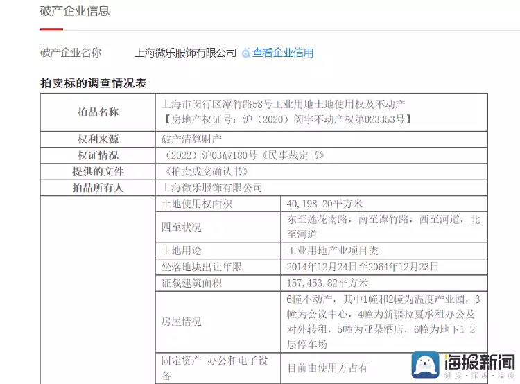 1月23日,位于上海市闵行区吴泾镇的一处工业用地土地使用权及不动产被公开拍卖,拍卖所有人上海微乐服饰有限公司是“中国版ZARA”拉夏贝尔的全资子公司,此次拍卖的办公楼正是拉夏贝尔的总部所在地。