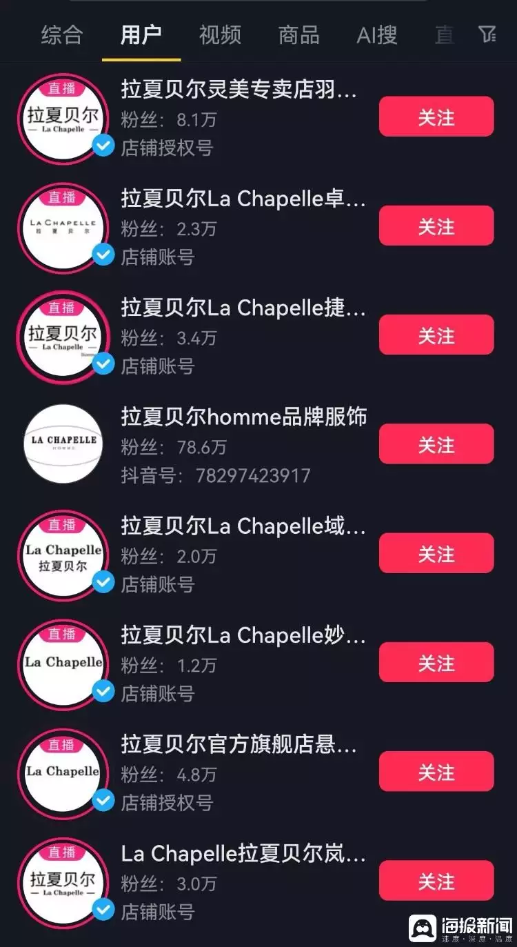 同日,记者浏览多个拉夏贝尔店铺账号,发现其直播间在线人数少的只有几十人,多的也基本在五百人左右。带货羽绒服价格多在两三百元,超过五百元的款式不多,总体来看略低于4幢活动现场打完折后的价格。记者咨询现场店员及直播间客服,双方均表示商品是原厂正品,非贴牌商品。