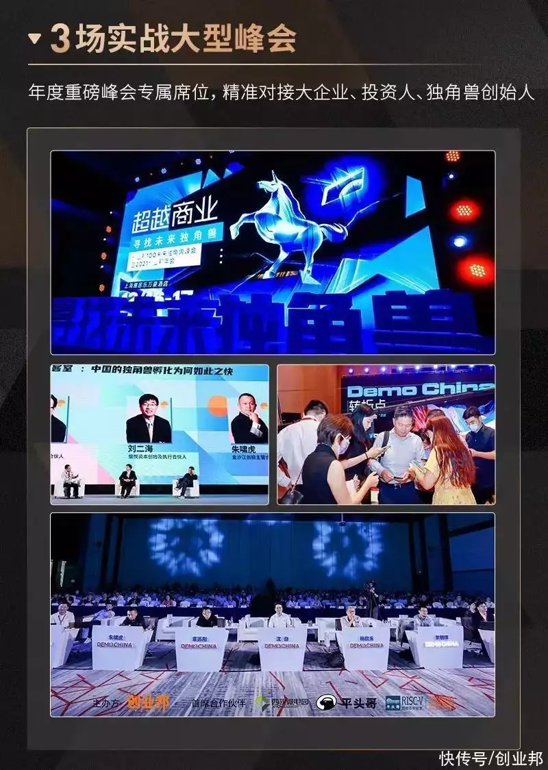 扫描上图二维码,查看具体内容创业邦每年会在全国各大城市举办多种创投峰会活动,包括Demo China 创新中国峰会、未来独角兽峰会、女性领导力峰会等等。会员将享有创业邦全年三场大型峰会的VIP席位,现场聆听一线投资人、头部企业家的精彩分享,掌握最新创投趋势,为你的创业指明方向。
