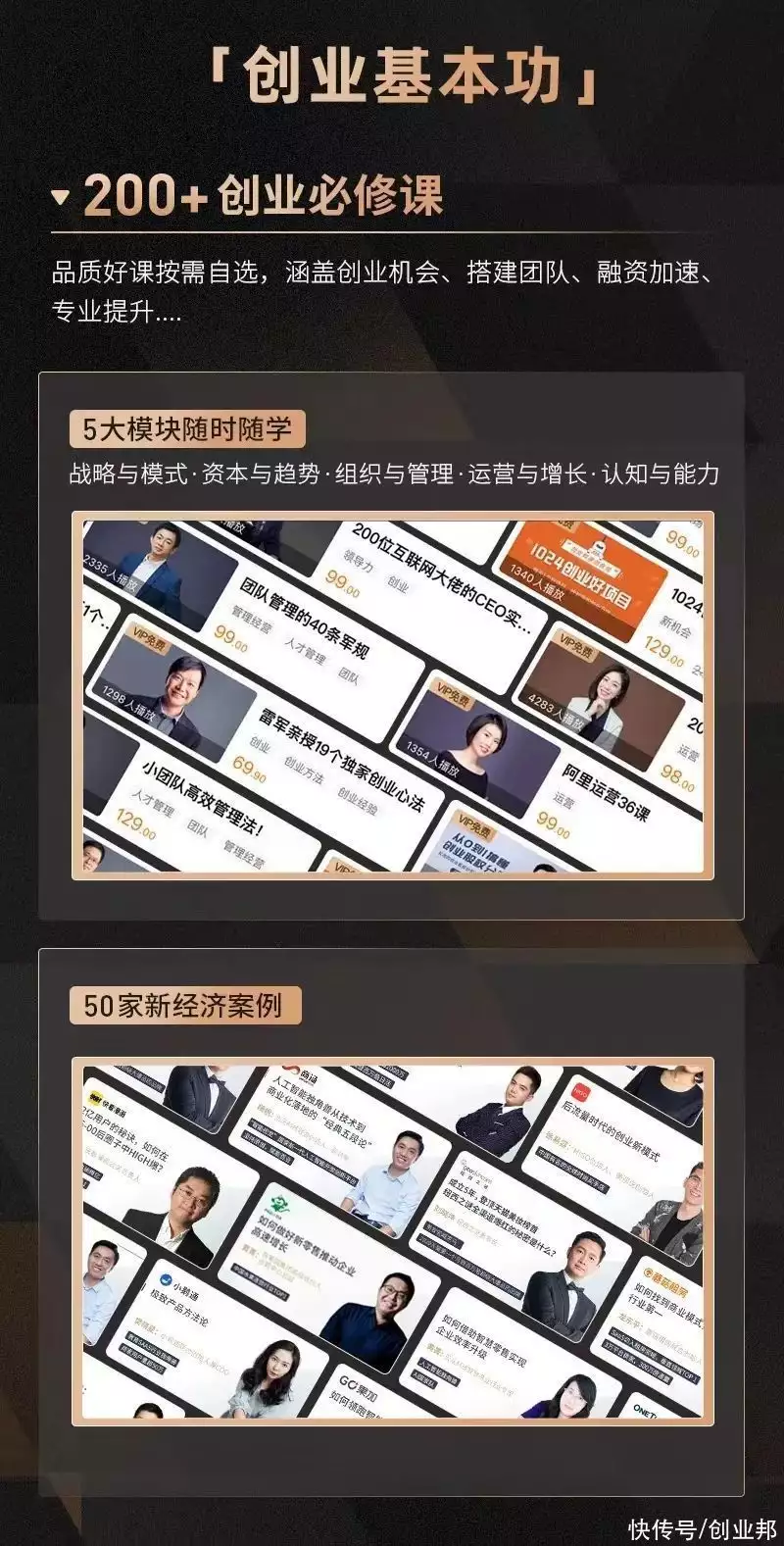 同时,会员还可以免费学习创业邦线上200+创业必修课,包含管理、品牌、营销、增长、融资、财税法等创业必备的知识和技能,升级你的创业思维,帮你打好创业基本功。
