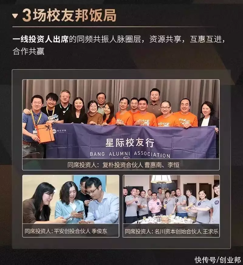 “校友晚宴”汇聚创业邦的优秀校友资源,他们都是各行业的佼佼者,将为你打通创业人脉圈,建立高品质创投资源池。