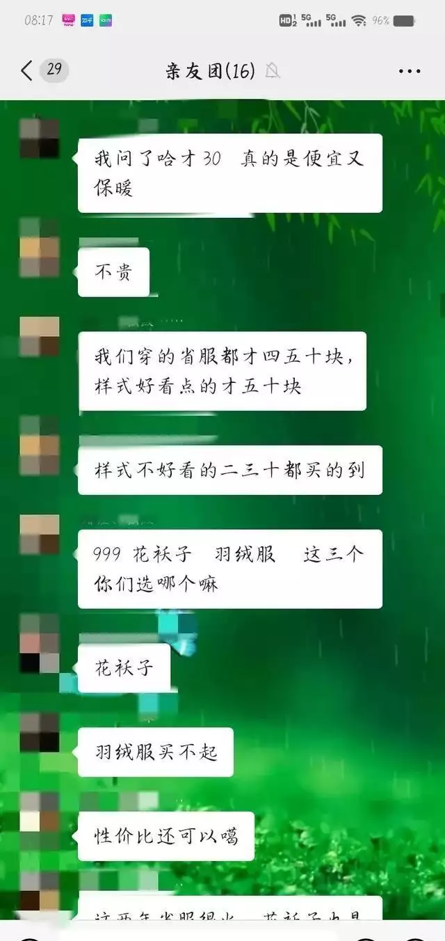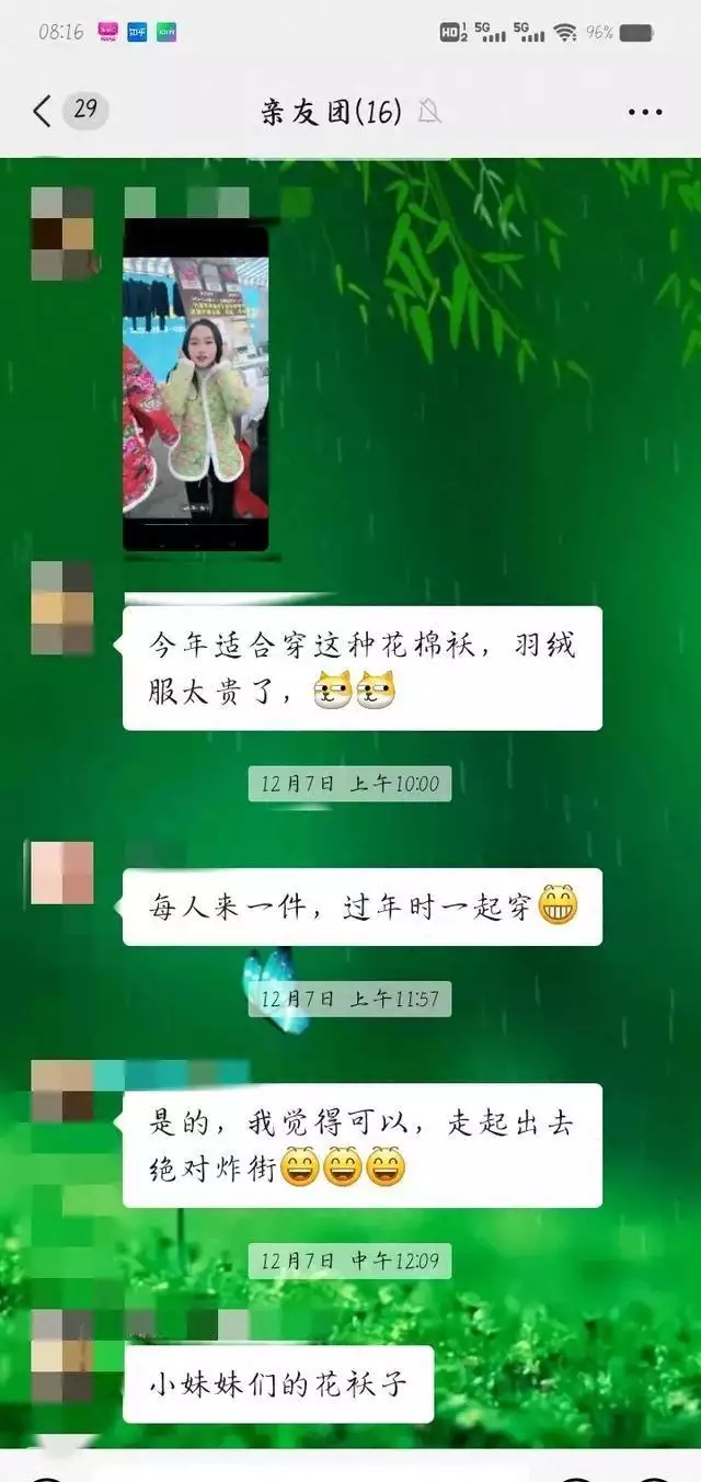 前两天降温了嘛亲友团里就炸了,说今年羽绒服买不起,流行花袄子了叫大家统一去买来穿。